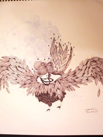 公園や外に出かけて描くことが多いので、白黒の絵ばかり描いていました。しかも、鳩ばかり目にするので鳥の絵が多い・・・・・