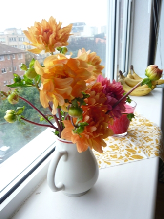 このオレンジの花のほかに、鉢植えとフリージアの花を買ってきました。